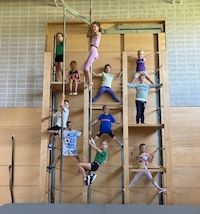 Auch der TV Möhringen beteiligte sich am diesjährigen Ferienprogramm und verwandelte die Halle kurzerhand in einen echten „Ninja-Warrior“-Parcours. Nach einem gemeinsamen Tanz zum Aufwärmen ging es voller Energie an die aufgebauten Stationen. Dort konnten die Kinder nach Herzenslust balancieren, klettern, hangeln, rutschen, schaukeln, springen und rennen.