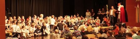 Zum Höhepunkt des Sport-Jahres 2025 lud der Turnverein Möhringen am 2. Adventssonntag in die Möhringer Angerhalle zur traditionellen Nikolausfeier ein. Der Einladung folgten zahlreiche Familien, um ihre Kinder auf der Bühne zu bestaunen. Unter dem Motto „Weihnachtszirkus“ wurde von den Kinderturn- und Leichtathletik-Gruppen ein buntes, abwechslungsreiches Programm präsentiert, wofür im Vorfeld fleißig geübt und geprobt wurde. Vereinsvorsitzender Stefan Rintsch begrüßte die Gäste in der voll besetzten Angerhalle und stimmte auf einen unterhaltsamen Nachmittag ein.